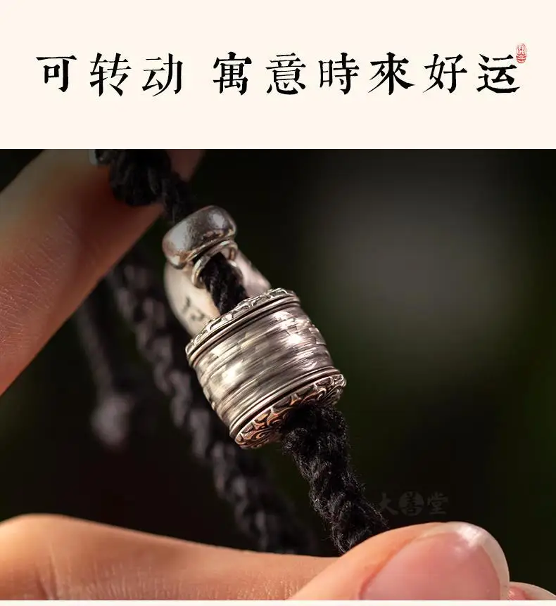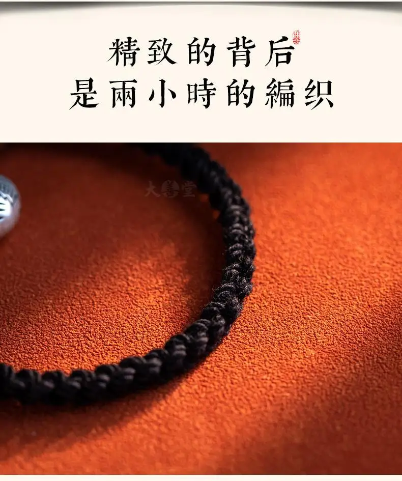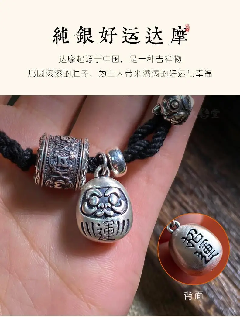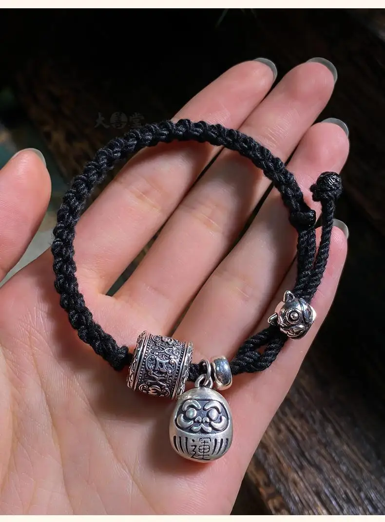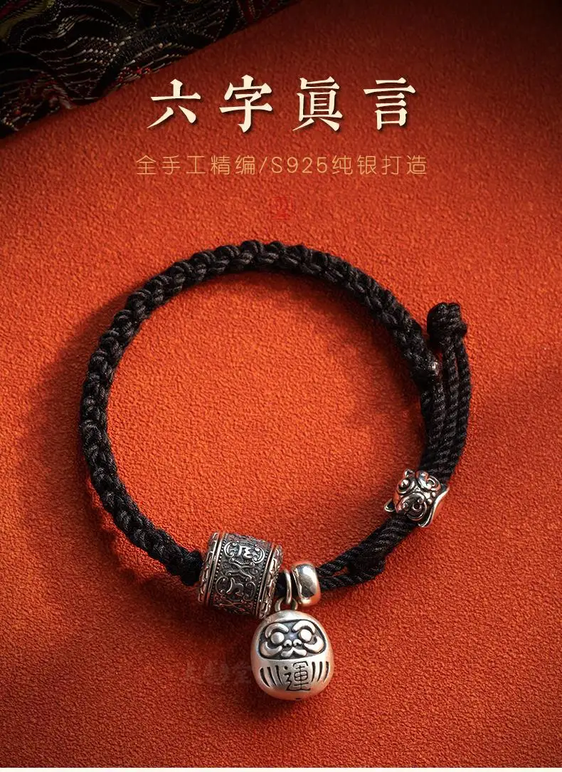 925纯银六字真言达摩手工编织黑手绳手链男女藏式手饰品民族é£?