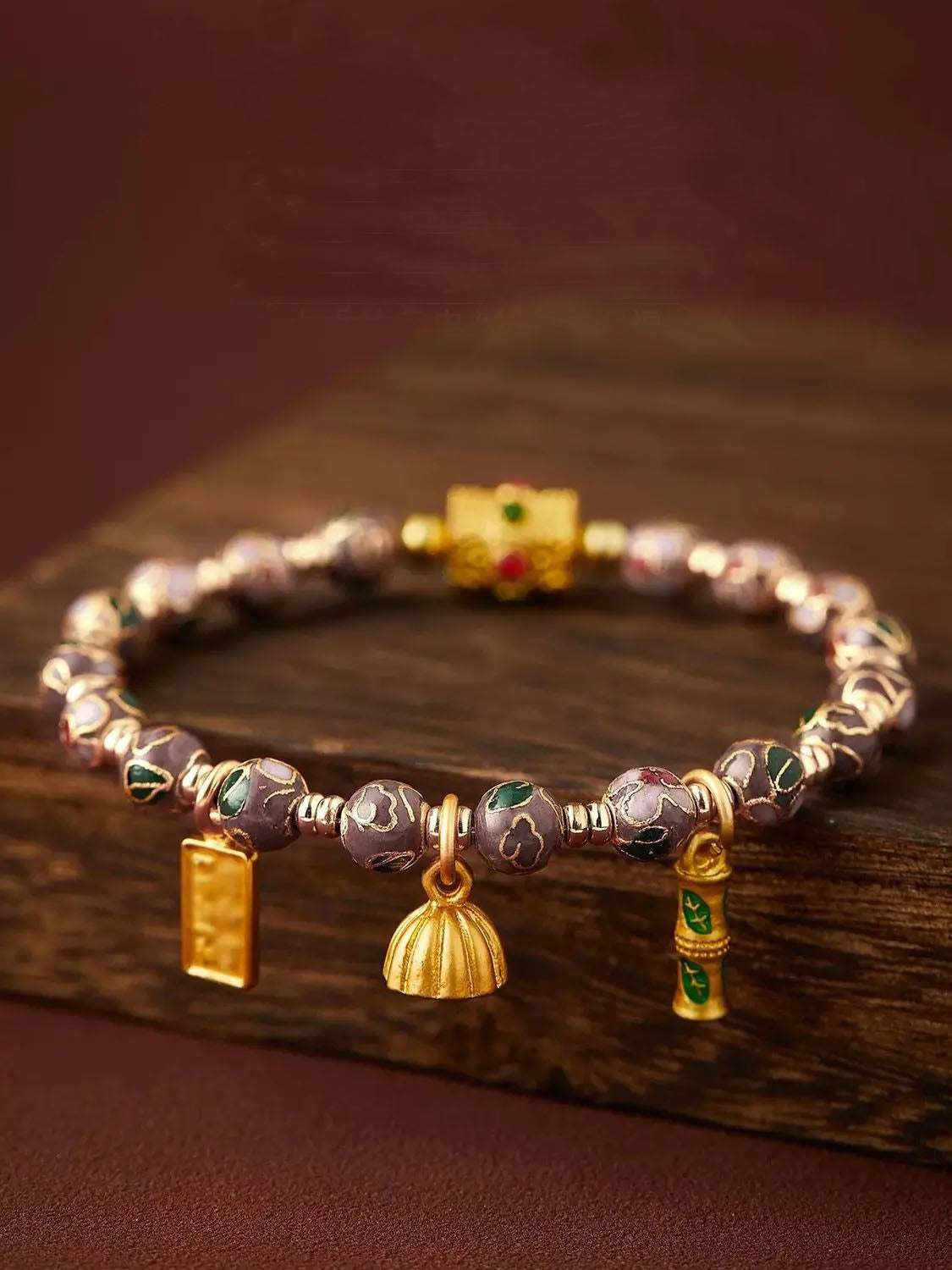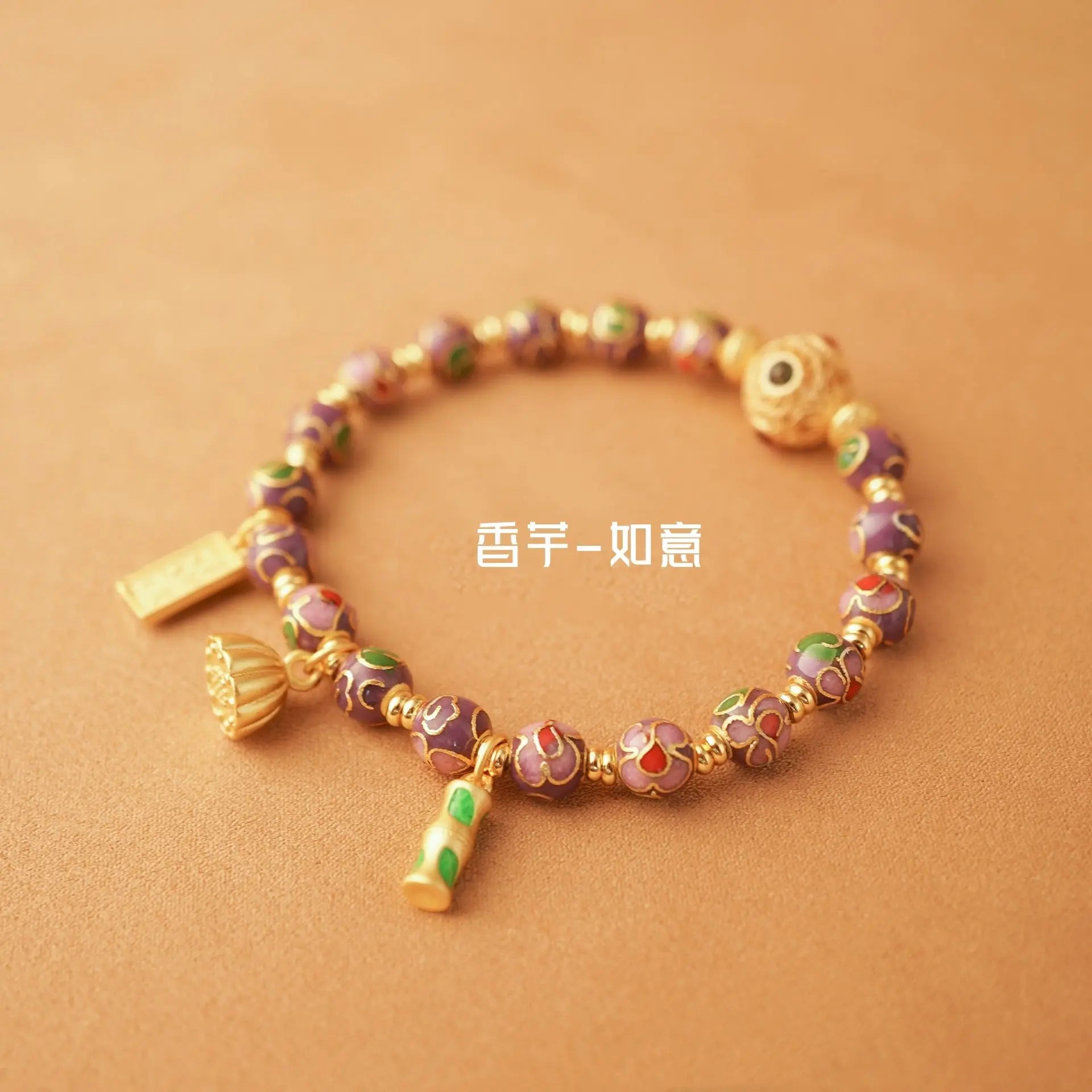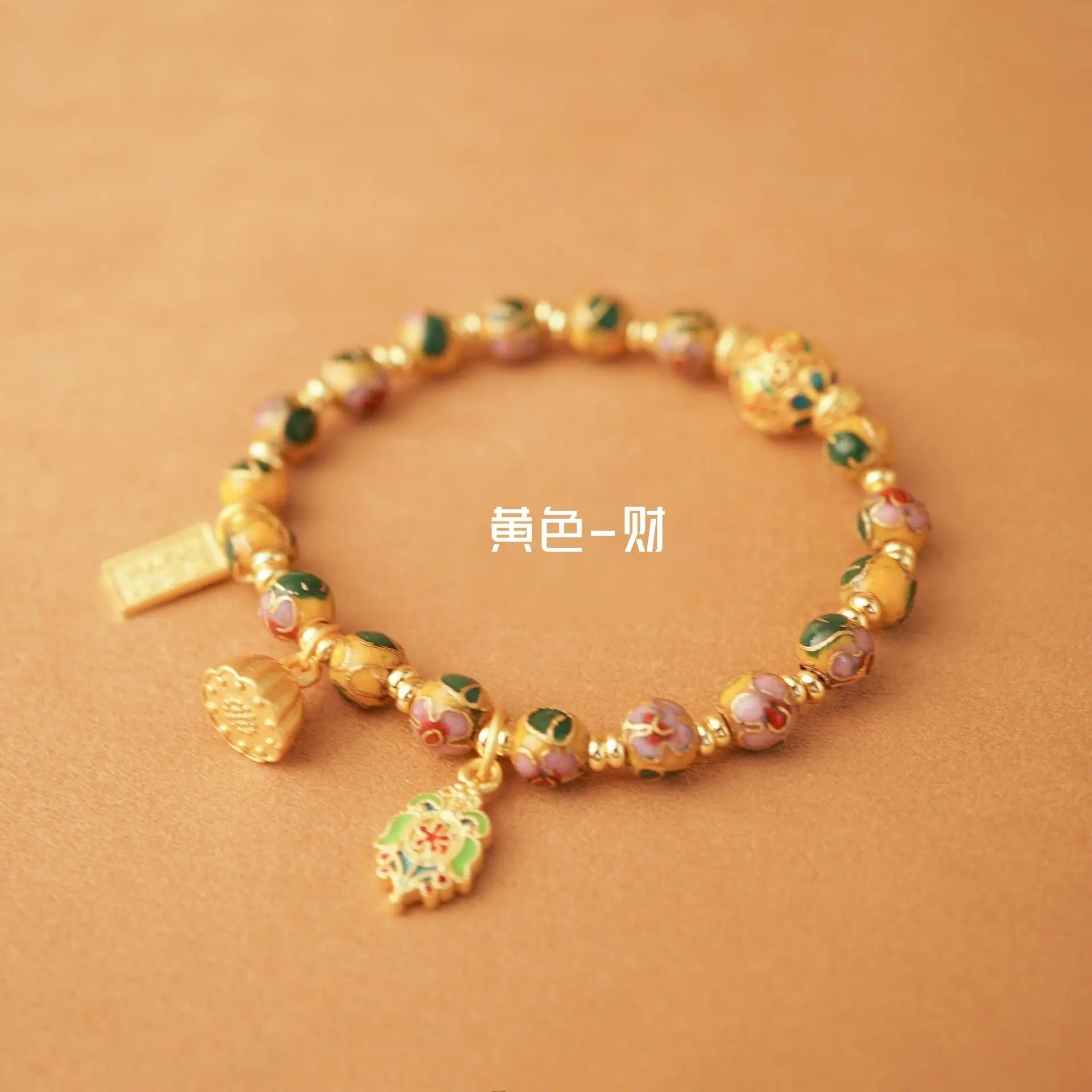 The "Imperial Floral Brocade" cloisonné enamel bracelet is a wearable item embodying Chinese art history and royal blessings. This exquisite bracelet replicates the ancient "cloisonné enamel" technique once used in Beijing's imperial court, transforming it into delicate floral ceramic beads. Each bead is meticulously hand-strung, resembling a miniature canvas painted with vibrant enamel colors, symbolizing good fortune and protection. It is not merely an ornament, but a portable heirloom—a "lucky charm" for the new year, carrying the grandeur of imperial art and sincere wishes for a better life.