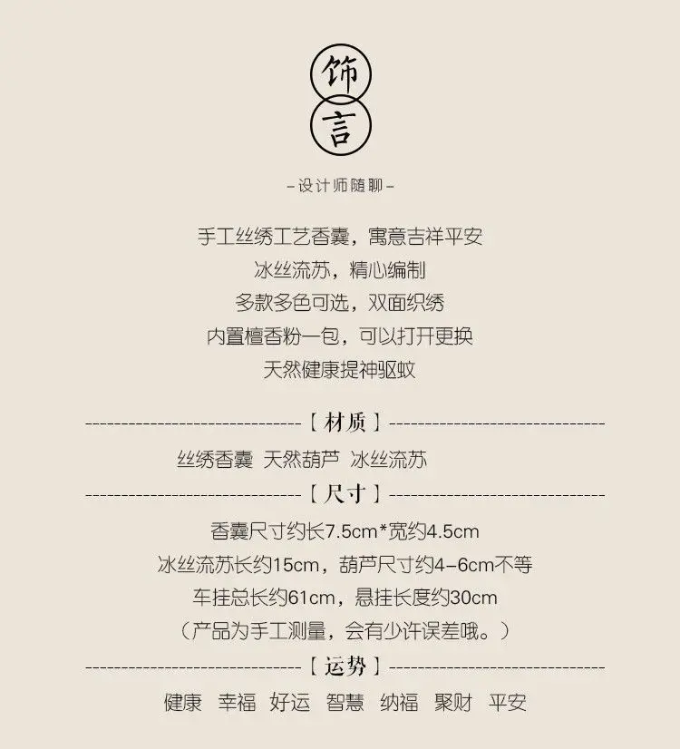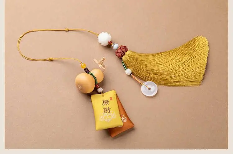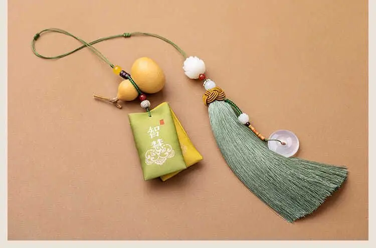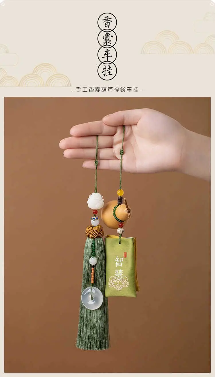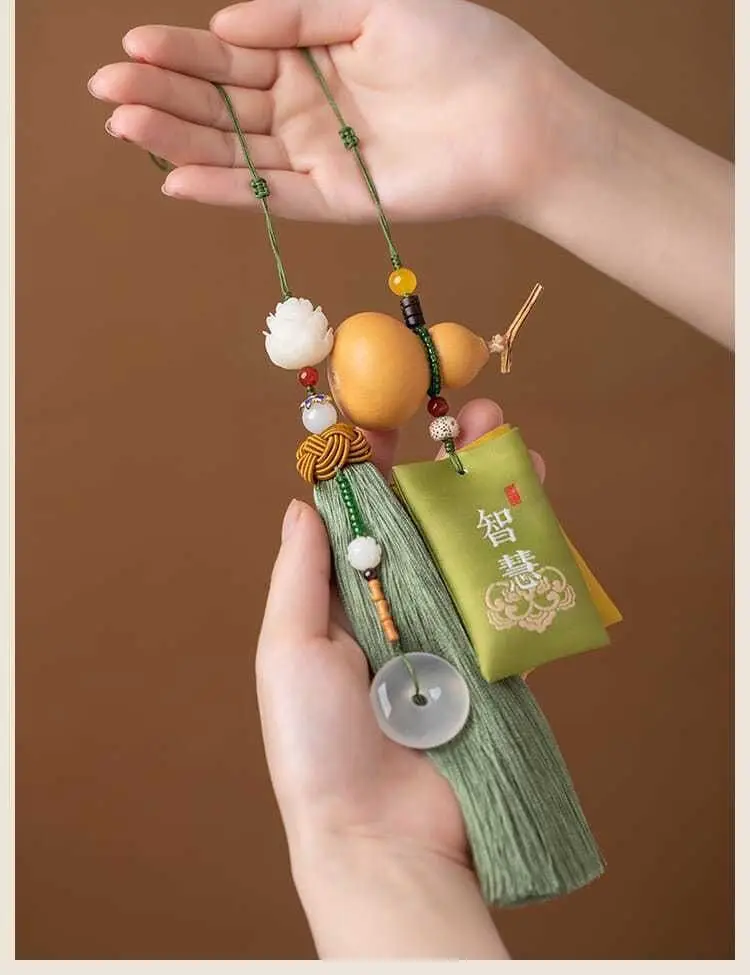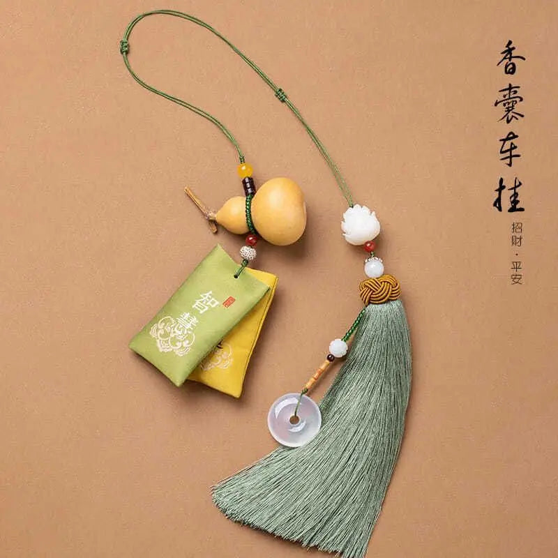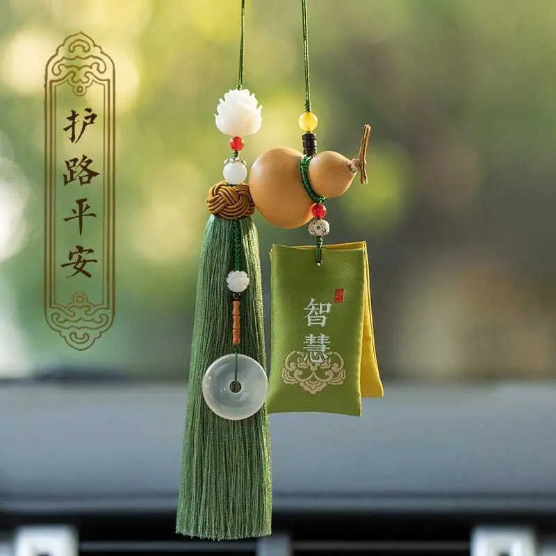 Car Pendant Fulu Gourd Creative Car Accessories Men's and Women's Green Sachet Bag Peace Rearview Mirror Decorations Bless Safe