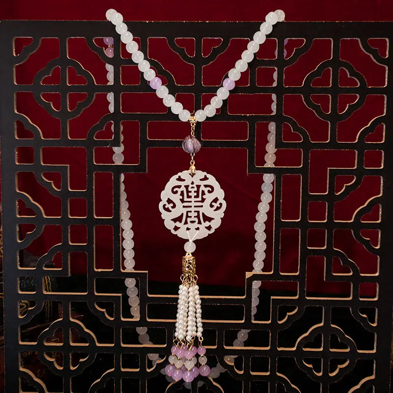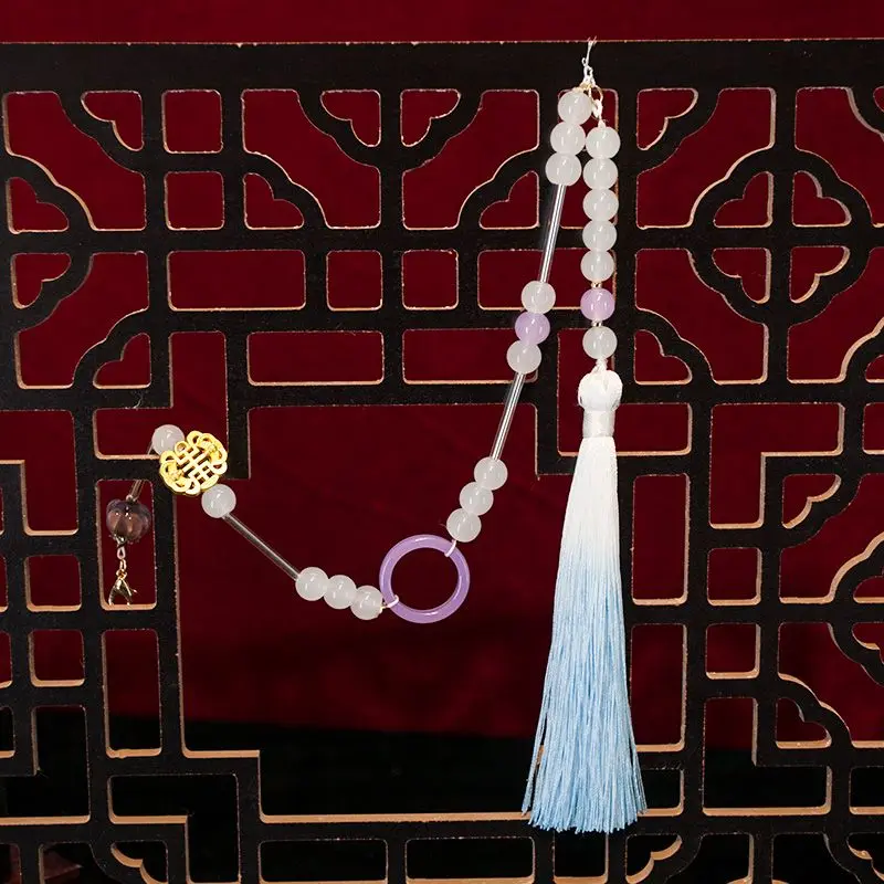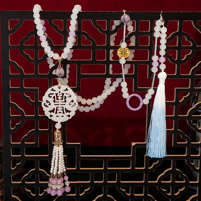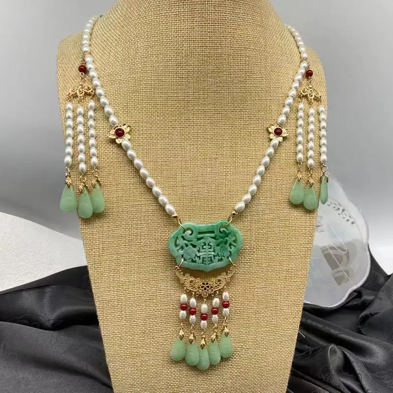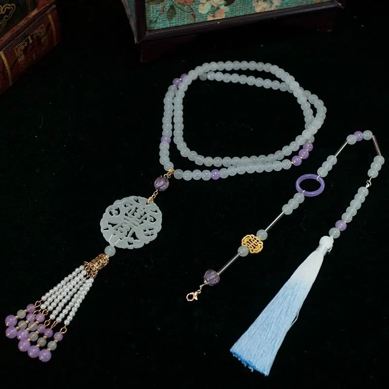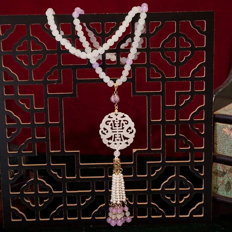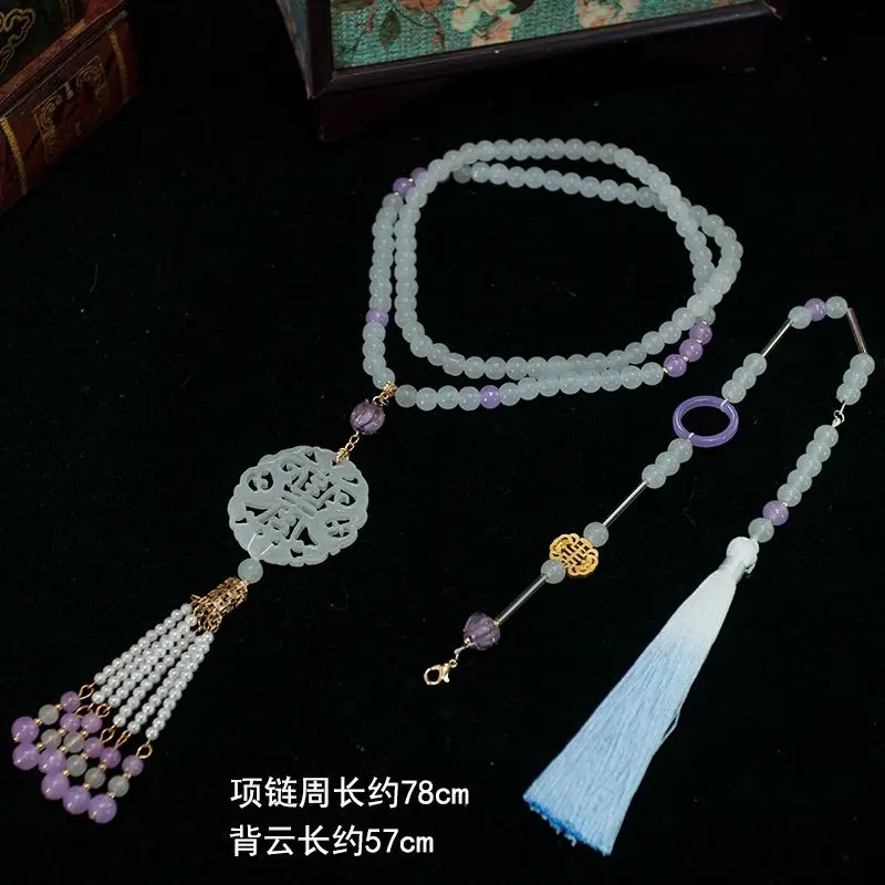 Hanfu Ancient Suit Horse Noodles Accessories Necklace Wreaths Back Cloud Tassel Super Long Chinese Pearl Ancient Pressed Placket