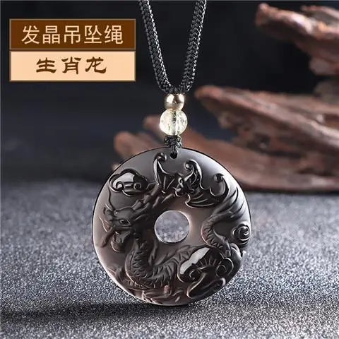 Ice Obsidian Chinese Zodiac Dragon Snake Safe Buckle Pendant Men Necklace Women's Birthday Year Tiger Guardian God Amulet Charms