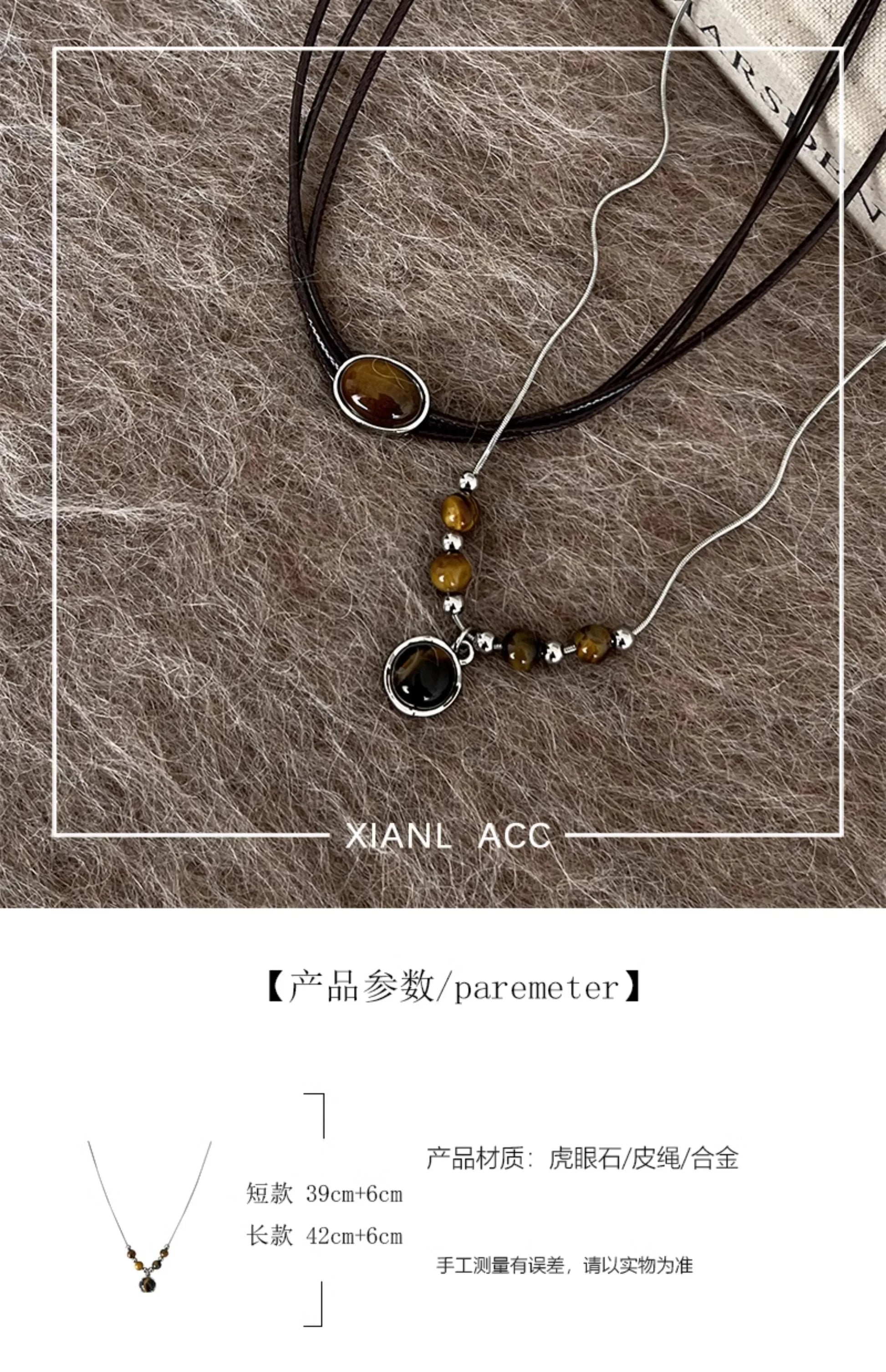 Leather Tiger Eye Necklace Women's Vintage Elegant Choker Light Luxury Stacked Wearing ChineseStyle Collarbone Chain Accessories