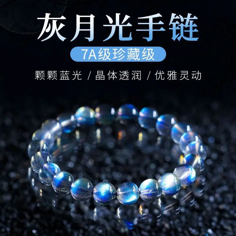 Natural Authentic Ice Grey Moonlight Stone Collection Grade Bracelet Women's Strong Blue Light Rainbow Stretching Stone Single Loop Bracelet Jewelry