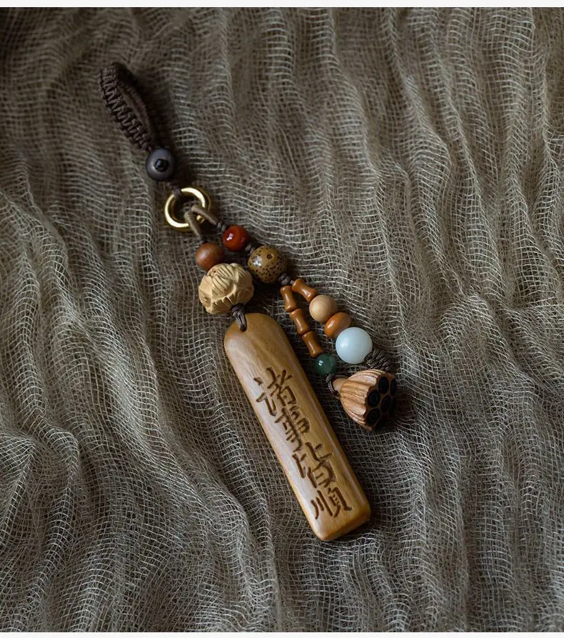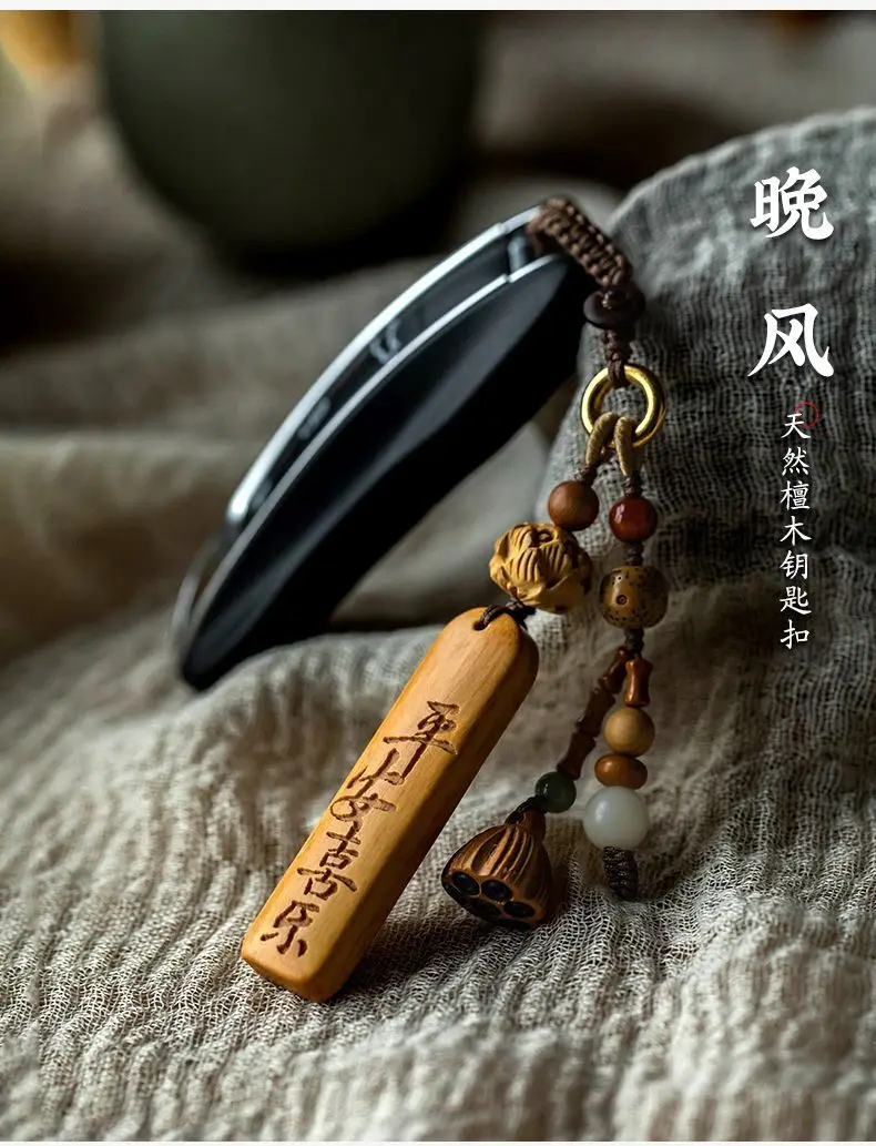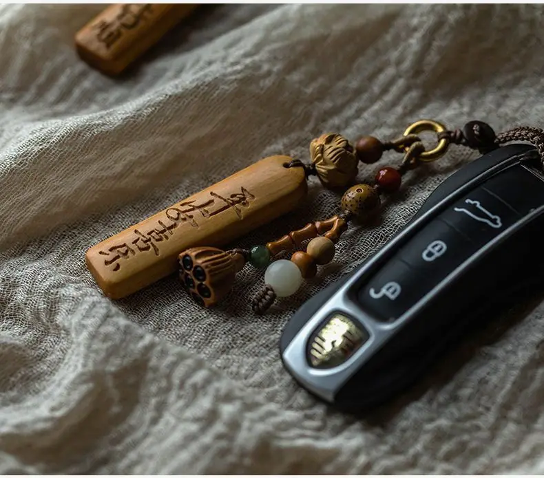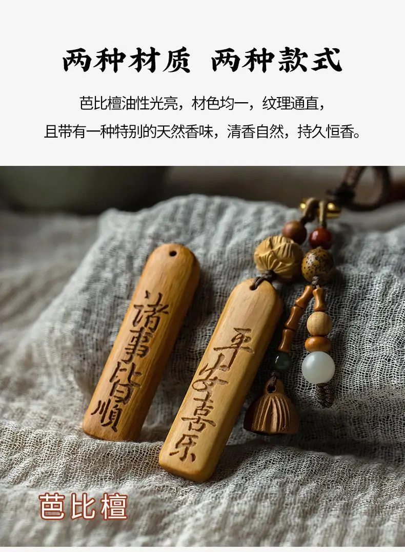 Natural Sandalwood Anti-lost Number Plate Car Key Chain Pendant Lanyard Nothing Card Customization Lettering Car Pendant Custom