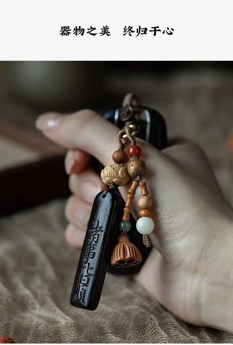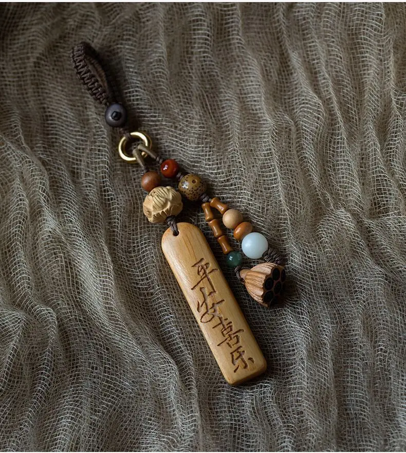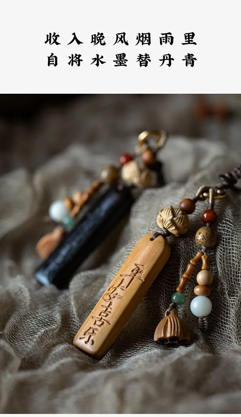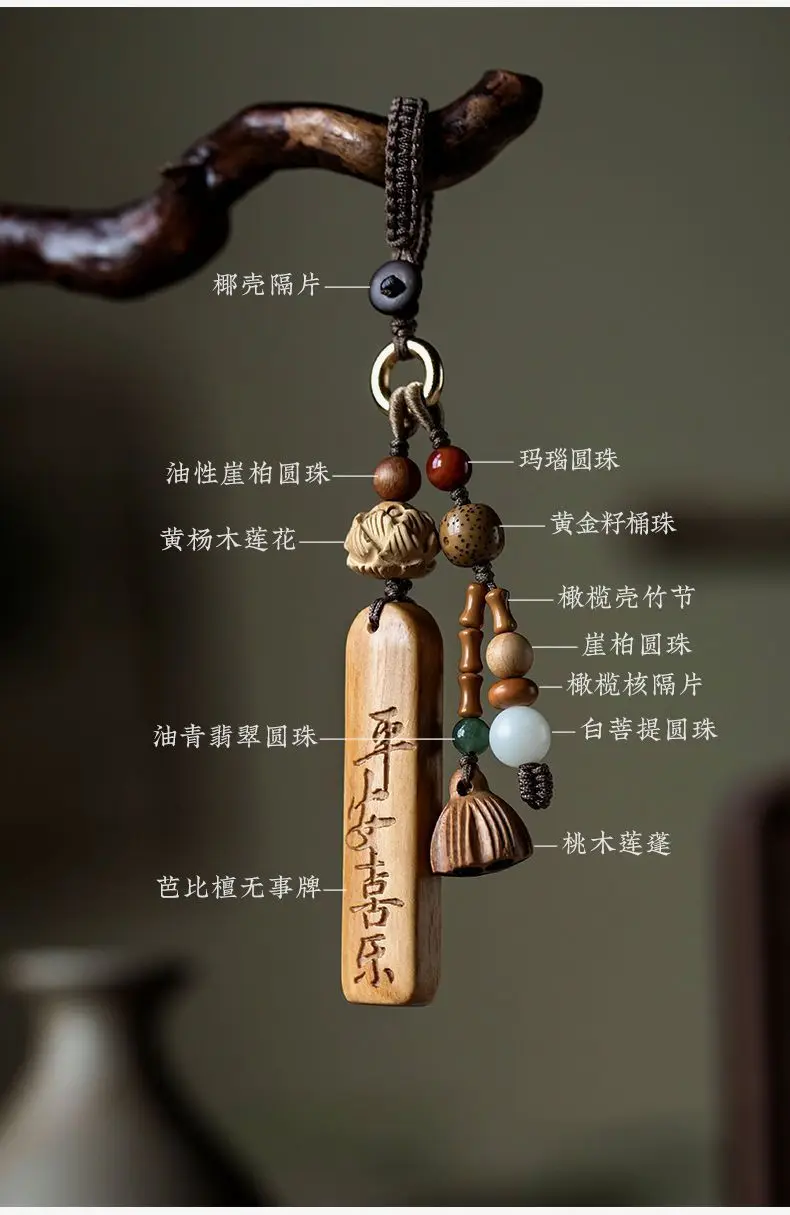 Natural Sandalwood Anti-lost Number Plate Car Key Chain Pendant Lanyard Nothing Card Customization Lettering Car Pendant Custom
